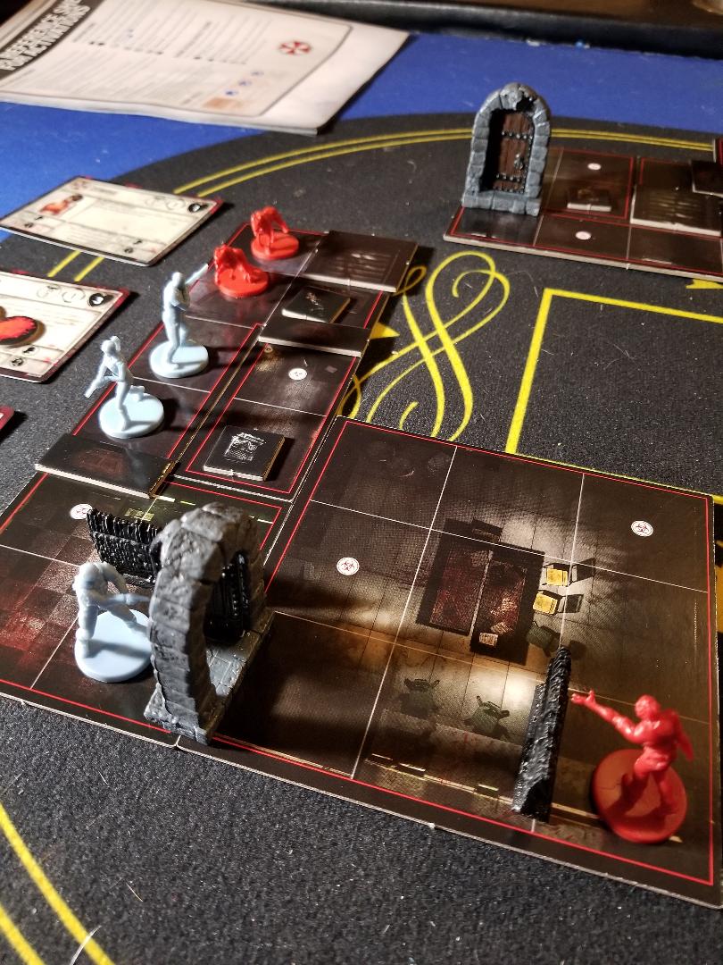 The base game comes with a bunch of different campaign based scenarios and each one is a completely different setup from the tiled board layout to the item cards you will discover. Also each scenario has a different win mechanism based on the scenario. I really love this style of win condition in board games where you have to complete objectives rather than worry about getting the most points. The objectives sound easy enough but once you get on the board you really start to see how they can be strategic. For example one of the earlier objectives requires you to just get to a specific room with all characters playing. However that door is locked……SO you will need to find the proper key to unlock it (they also keep the awesome club, heart, diamond etc. keys in game). BUT once you’ve found the key you see there are other doors that are also locked with the same key but are out of the way…..so, do you go investigate those rooms for their loot (and possible enemies) or just escape. I really love the choices they give you in the game in this regard.