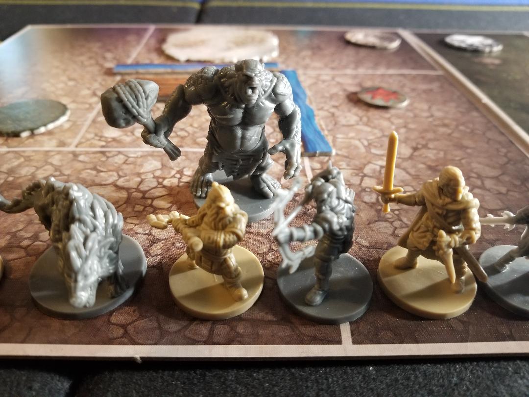There is however a couple of bigger square sized “battle map” boards as well. These are little zoomed in adventures that take place in between the regular journey adventures. Whereas the journey map is a view of the surrounding lands you are exploring, the battle map is of a particular battle or place. It really shakes up the gameplay and thus far I have been pretty impressed. However these boards DO warp as they are much bigger than the regular tiles but a slight bending gets them back to normal.