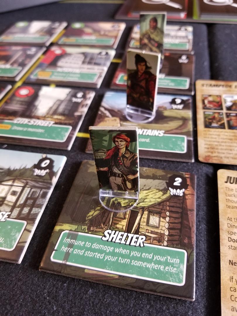 The Jurassic Perils and Kaiju Rising mini expansions both came in small tuck boxes which honestly can be pitched since ALL the cards will easily fit in the base game box. I still have them….they have a nice glossy sheen to them that appeases me.