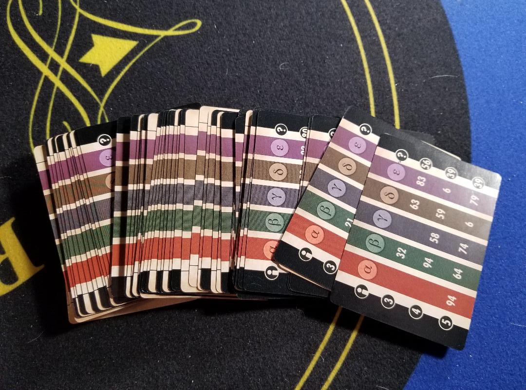 The game board is composed of 6 large tiled sections that fit together in different arrangements to give variability to the playing board for each different game played. On top of that there is an entire deck of cards that the only purpose of which is different tile arrangements. The board pieces are of a thicker cardboard and of a good quality. The other tokens and bits in the game are the colored cubes for the five players, each of a different color and also a special “clue” booklet for each player as well. The cubes and pegs are all wooden and also of a good quality and even though the cards are only used to set up the specific map you are playing, they are a decent quality as well.
