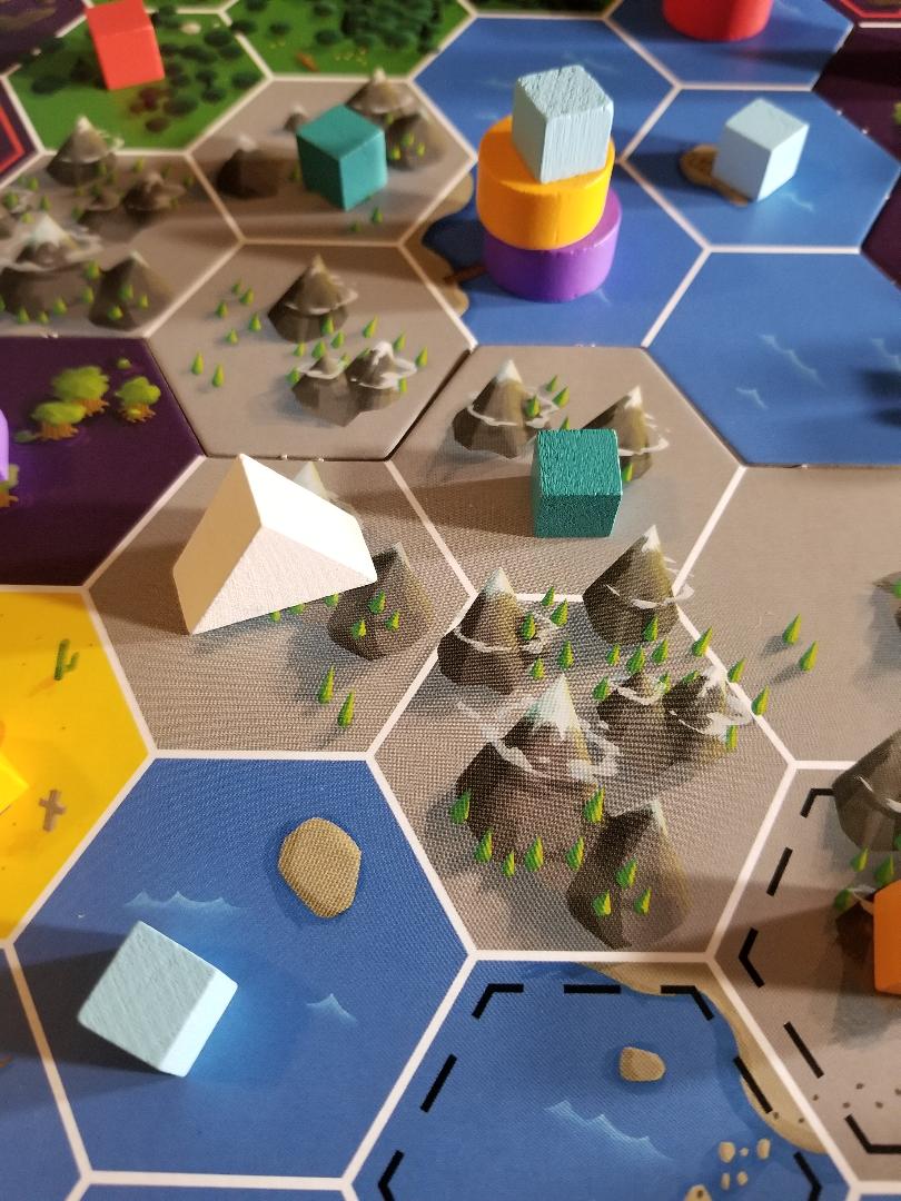 The graphic design is super basic and the tokens are also pretty basic. This didn’t detract from the game persay but it did pull away from the theme for me. If the artwork on the board was better, more intricate I think it would have improved the idea of a search for a cryptid. Also there just are not enough tokens included in the game. Multiple games I have played either one or more people end up running out of cubes. I ended up ordering some extra cubes from a website just to supplement.