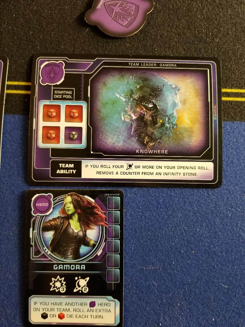 Your mission is to prevent Thanos from acquiring all the infinity gems and defeat 7 enemies along the way. To do this there is a deck of cards that is drawn from and placed around the Thanos board. This is the asset deck. As you perform dice rolls battling Thanos around that board you have the opportunity to either damage enemy cards that are drawn from the asset deck or collect more heroes to add to your team. Each hero added also adds an entirely unique ability that you can utilize going forward and some heroes work better off others and so on so you can strategize a bit on your technique.