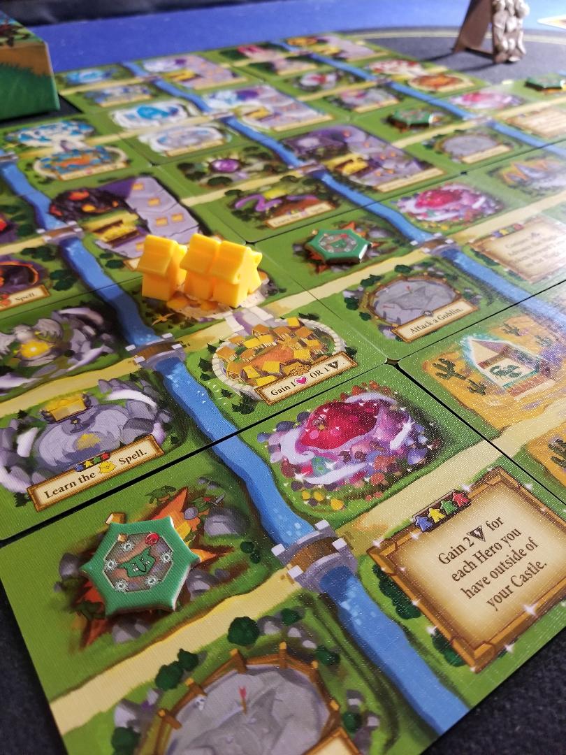Replayability is pretty decent. I mean the game map is basically shuffled every time you play although the castles are always in the same spots. So that mushroom grotto that was up to the right last time might be down to the left this time. Also the flip side of the cards adds another layer of replayability with the Gloom. A more difficult variant on the base game with new art and colors. Also the quest deck is pretty thick so it’s doubtful you will see all those cards in a single game which also adds some variety. BUT beyond all that variability you are basically doing the same stuff over and over again, moving around exploring temples, fighting goblins and the like. It’s fun for sure but I can see it getting samey after a few plays.