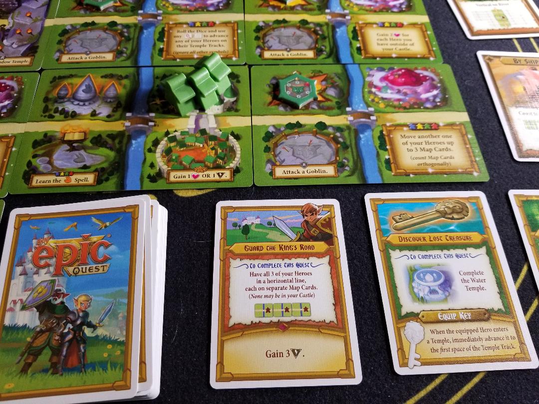 Table talk is also good since you will be directly competing with other players on exploring temples and collecting those legendary items from said temples. Also there are always 3 quest cards on display that are anyone’s game which further enhance the table talk when players are inevitably moved to meet up and compete for those delicious treasures.