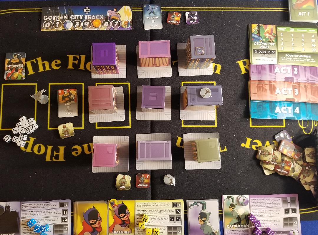To win you must survive through 4 Acts. If by the end of Act 4 you are still alive and the explosion and civilian casualty tracker are not on zero then you win! It sounds simple enough and honestly the game isn’t all that complicated but man it is rather difficult. There are just too many things running amok all over the place and not enough heroes to solve them all so bad stuff WILL happen. Of course I feel like that is pretty much the norm in Gotham city.