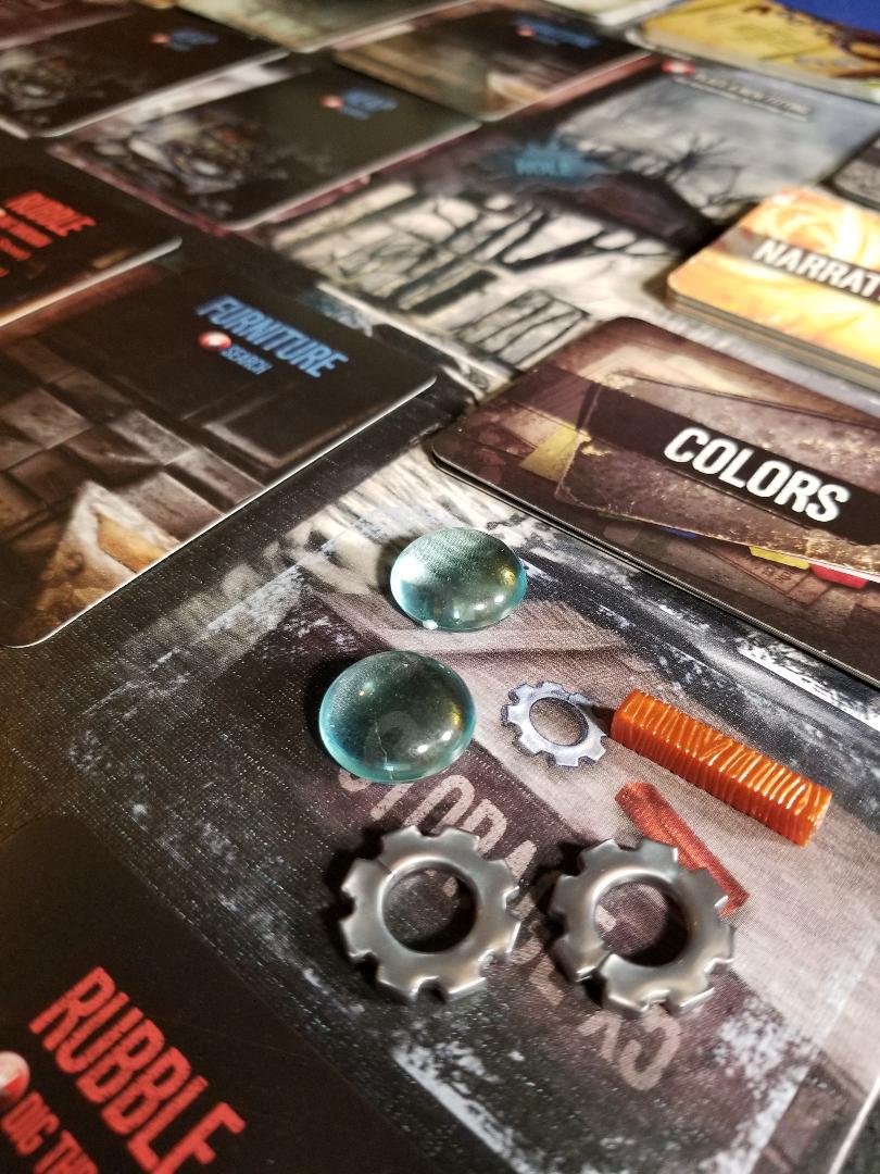 The artwork looks good on the cards. They basically took the computer generated art from the videogame this is based on and printed it on the cards from what I can tell. The art on the board looks the same showing the insides of the house. Once the game is setup it is rather eye catching what with all the different card draw piles all over the board.