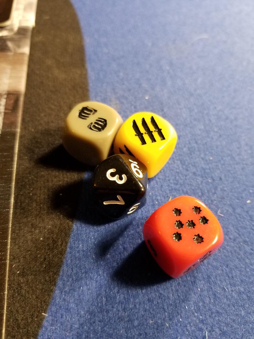 This game comes chock full of components. Only 4 dice that are used for battle and rolling to see what extra supplies you might find when out scavenging. TONS of cards. The board comes labeled to show where specific draw piles of cards are placed which is awesome. Makes setting up so much more simple. On top of that there are little cardboard tokens showing food, weapons, parts, status effects, medicines and so on. There are also little plastic pieces that represent wood and gears and little blue plastic marble looking doohickies that represent water. There are also minis! You get a mini for each different playable character in the game and they are actually pretty detailed. All the components are of a higher quality and are sturdy enough. The one downside to the components in the game are the 2 plastic ziplock bags it comes with. As I mentioned earlier the game has a “save” feature to allow you to stop playing and pick up again later on. To do this you must place most of your cards and components you have collected into the included plastic ziplock bag. Now these bags are cheap. Just your basic plastic bag you would get at a grocery story. For a game that you will for sure be saving as often as you play you would think they would have included a more premium baggie to save your stuff.