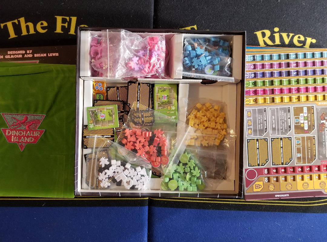 The box…..kinda sucks. There is far too much stuff in the box for its size to begin with. On top of that there really isn’t a “good” way of cramming all the stuff back in. There is a cardboard insert that can be used….but it mostly just takes up precious space that you need to jam everything back in to get the lid to close the whole way. Plus all the different components that this game comes with its awkward to stuff everything back in bags….I am still using the insert and feedangled a way to make everything fit, mostly. But it’s very…oh what’s the word…..haphazard? It’s not organized like I would prefer, let’s put it that way. This actually came as a huge surprise to me when I opened the box as Pandasaurus games are the same people that made the fantastic Wasteland Express Delivery Service which has the absolute best gaming insert I have ever laid eyes on in my life.