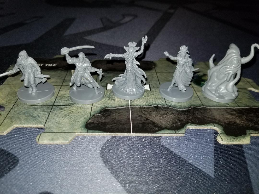 As far as components are concerned they are all a pretty high quality. The minis look great however the plastic they used to mold them is pretty flimsy and there are a few that are bent in weird positions. Not a deal breaker for me though. I mean I am a HUGE fan of the source material they used for the game so just having a mini of Drizzt and team is amazing and they are begging to be painted. The tokens are a thicker cardboard and the game board pieces are all of a high quality thick cardboard. The cards they use are of a decent quality as well, somewhere in the middle.
