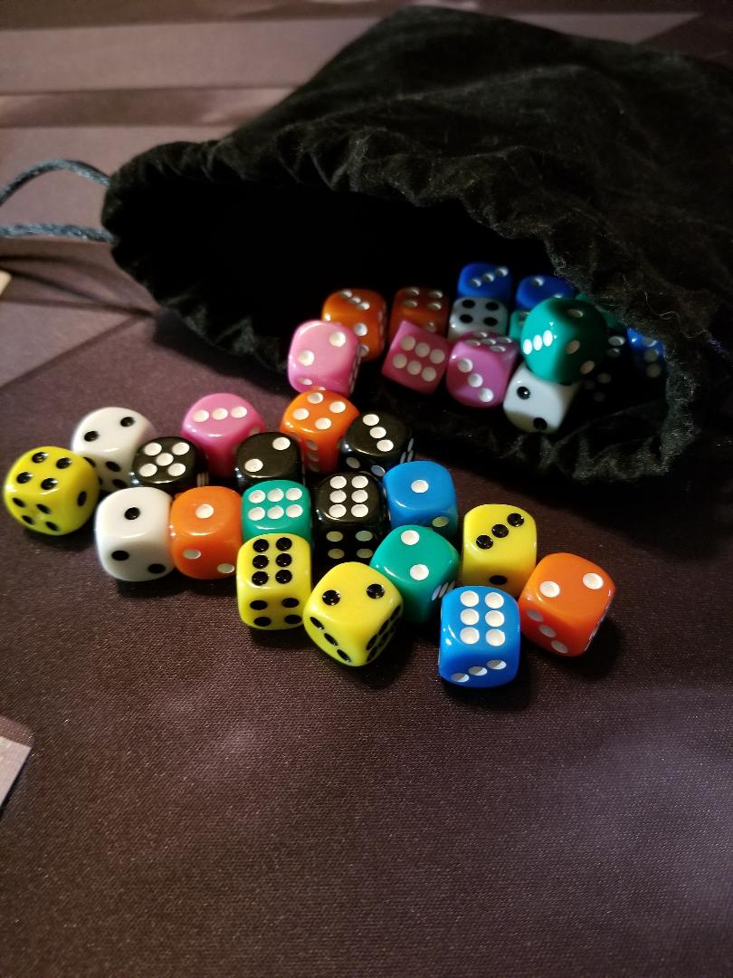 Lots of table talk here! Going through the story you end up seeing things on each beautifully illustrated page that warrants discussion as well as choices that you work together to make when approaching minions to battle. There is a luck aspect involved as well but there are abilities to mitigate that luck to some extent. In one particular incident we were at the end of one page and I needed to draw out of the bag at least 1 purple die to complete a test……there was only 1 purple die left in the bag….Needless to say my first draw of 5 dice I did not draw the purple die . HOWEVER my wife’s character had an ability that would allow another player to put those dice back in the bag and redraw! SO after doing this I was able to draw the 1 purple die!! And then I had to roll at least a 2……which I did!!! So we went from pretty let down all the way to super pumped up in mere minutes. Not only that but that second draw I did, I made it super edge of your seat as I drew 1 die at a time and let it linger muehehehehe. That said though, even if I were to fail at that task the story would continue, it just would go in a different direction than if we passed the test.
