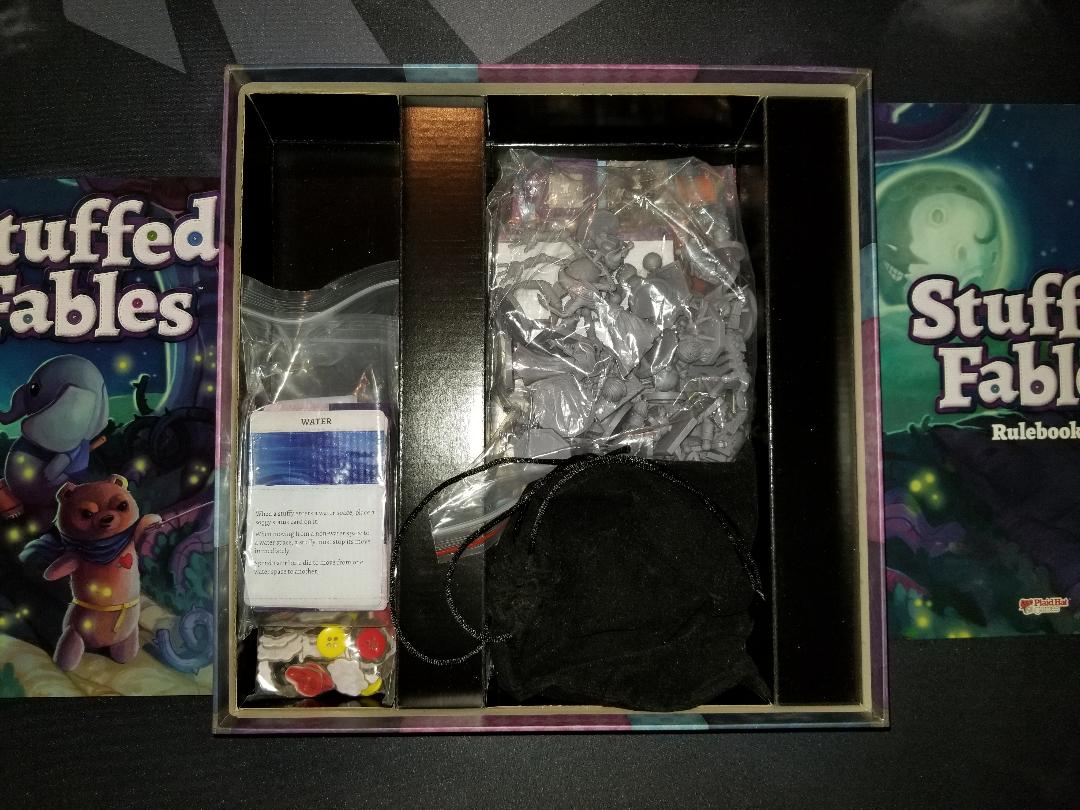 The box is your pretty typical box. The insert in it only serves to divide up the cards and pieces and you will want to bag up all the little components. The storybook sits atop the cardboard insert so nothing moves around and the lid closes flush so you can stand it on its side. The lid does have a nice spot uv finish so it looks really nice and it is sturdy.