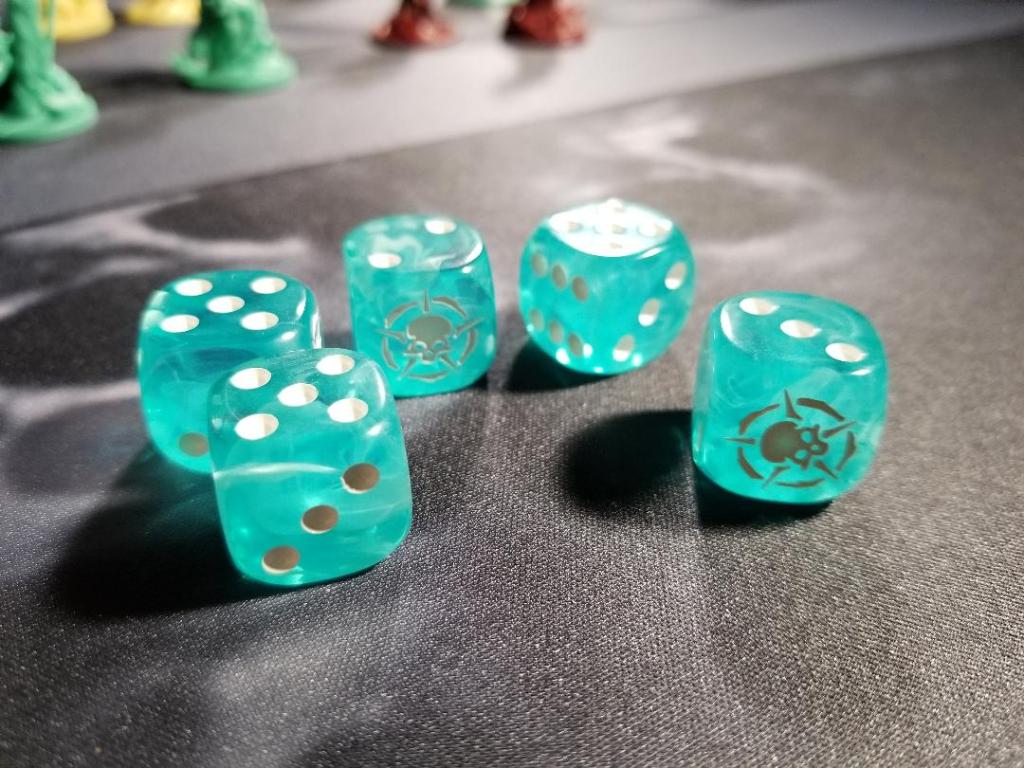 During a standard round the starting player (oldest player, also starts with the Death figure which can break a single tie during a round) will first roll dice equal to the number of players and THAT amount is the amount of Etherea that has to be divided up into piles equal to the number of players plus one. This will determine how much etherea each player can collect and how much will go into the Dirth Forge location on the board (I’ll explain this in a bit).