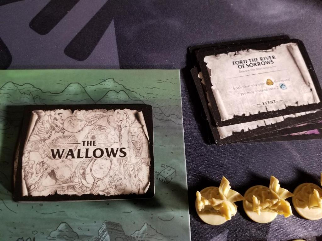There is no vp tracker on the board which would be a great help. And although I really love the wallows cards and the difference and twists they bring to the game, sometimes you will draw one that absolutely doesn’t help you and indeed, if done, would actually hinder you more than help. The metal skull trackers don’t fit properly on the player boards and the space for the unity tokens is a bit too small with the gained tokens spilling off the edge of the board. Finally the metal faction tokens need to be colored to be more easily visible to players.