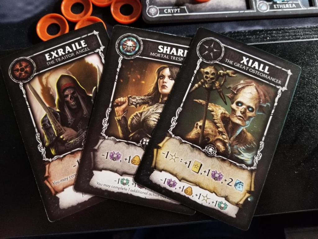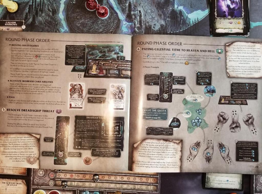 And to be honest I didn’t come across many rules that weren’t explained in the book. There were a couple things that could have been explained a bit better such as the ethereal distribution and why you create as many piles as you do and why you could create piles with zero etherea. And also that during the action phase you could attack a Raker as an action OR when doing the action of a mourner card you want to flip the card over to show it’s been done. Just a few little things like this would have been helpful to mention.