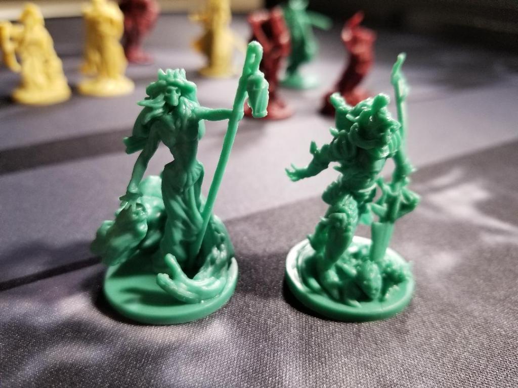 The miniatures all look great with some having much more detail than others. The Spirit factions’ miniatures are real standouts here having some impressive detail although I have noticed a few seems in some of them where they were glued together. This doesn’t bother me at all but for those miniature aficionados out there, this might bother you.