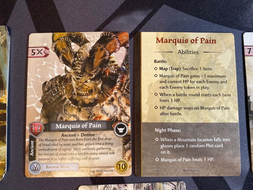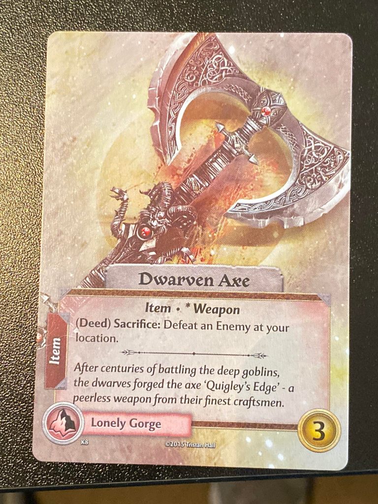 Also the plot cards and Ancient were a bit confusing to figure out as well and this ties back to those pesky “Deeds”. A prime example is that you need to perform an “Assault” Deed in order to attack the Ancient, which I never found the Assault keyword on any card so I’m assuming one does not exist even though the word Deed is aligned with multiple other words throughout. ANYWAY, it states in the manual that, “ Restriction: Hero must have completed their saga finale, they must be at the Ancient’s location, and that location must have no other encounters.” Ok, this is pretty cut and dry. BUT THEN, under the Ancient Battles section it states, “It is not mandatory for a hero in the same location as the Ancient to battle it, they must perform the Assault Deed to initiate battle with it.” Confusion abound. Perhaps I’m just dense and am not understanding the wording correctly, who knows.