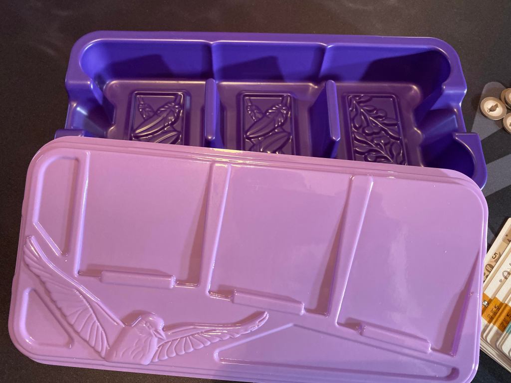 There is also another complete plastic card holder box, this one in purple to match the eggs. Now you can easily store all the cards from the core game and expansion and heck, even future expansions in both of these. Lots and lots of space. There is also a new scoring pad and some new end of round objective tokens and cards to mix in with the core games batch to add a bit more replayability to the game. Oh, and let’s not forget the plethora of new bird cards. All European birds this time around with a few new abilities which I’ll speak more on below.