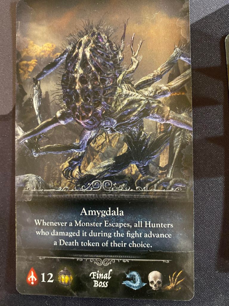 EXPANSION NOTES: With the expansion they have also included these Rune cards that are dealt out at the beginning of the game, each player is dealt two and chooses one to keep. These offer up much more strategy and give players a kind of direction when starting out. Adding the insane amount of extra item and weapon cards to the core set also allows players to work very specific strategies when slipping into the Hunter’s Dream and selecting new upgrades. Furthermore, there are the Death tokens that actually can limit the amount of trophies a player can get if they die. This creates more tension and actually gives even more reason to not die rather than just losing unbanked blood tokens.