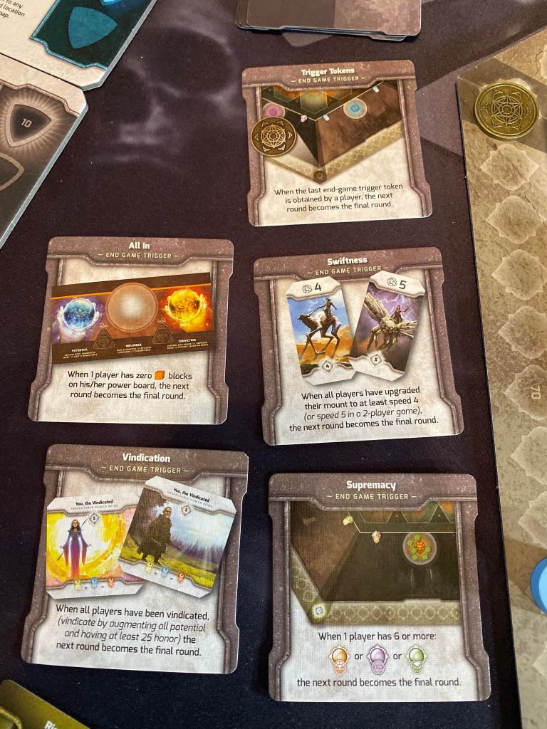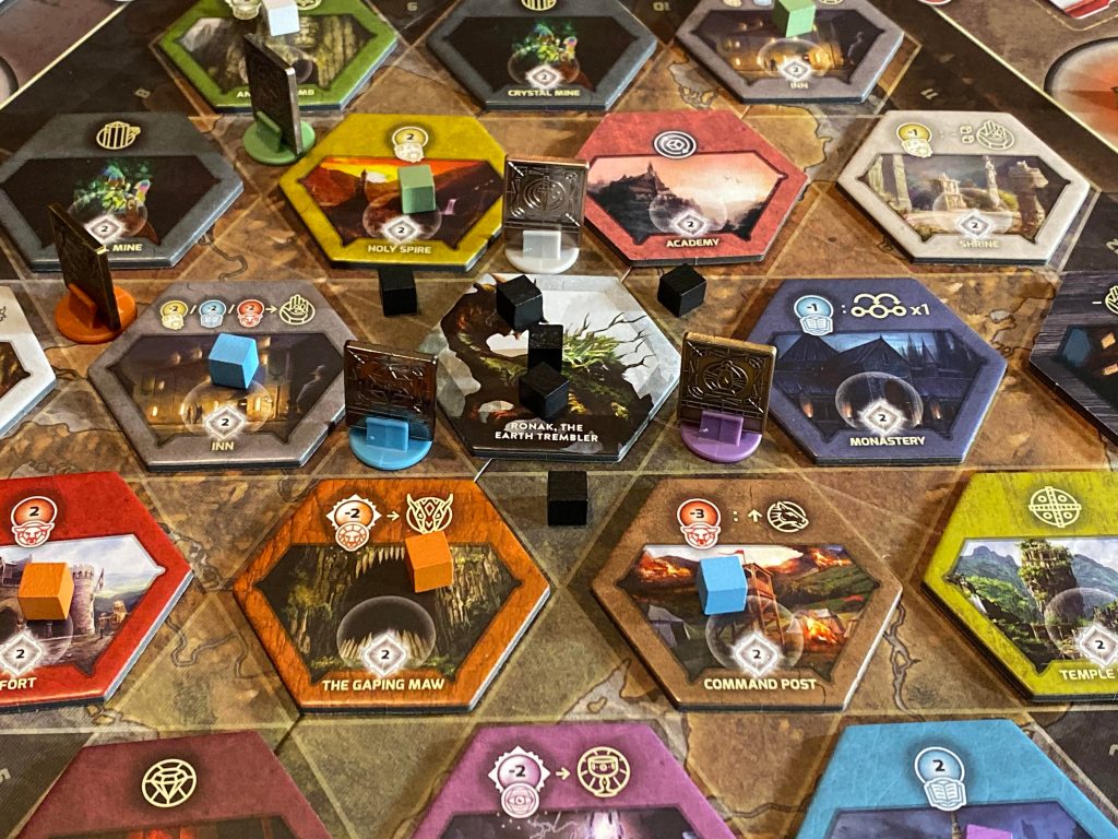 This game really hit all the right spots for me. It has exploration and interesting cube manipulation and a really fun theme (if a bit generic) on top of all that. It’s thought provoking and has a very high degree of replayability with all the different modules you can add to the game to change stuff up a bit. And even though there are many different ways to try and gain points, you never really lose that focus you need to get them. Oh I forgot to mention the fun end game triggers! The game doesn’t just “end” when someone hits a certain points threshold or anything. There are two end game triggers starting out that are also variable and on top of that as players hit certain Honor point goals in the game, MORE end game triggers unlock which hastens the end in a fun and exciting way.