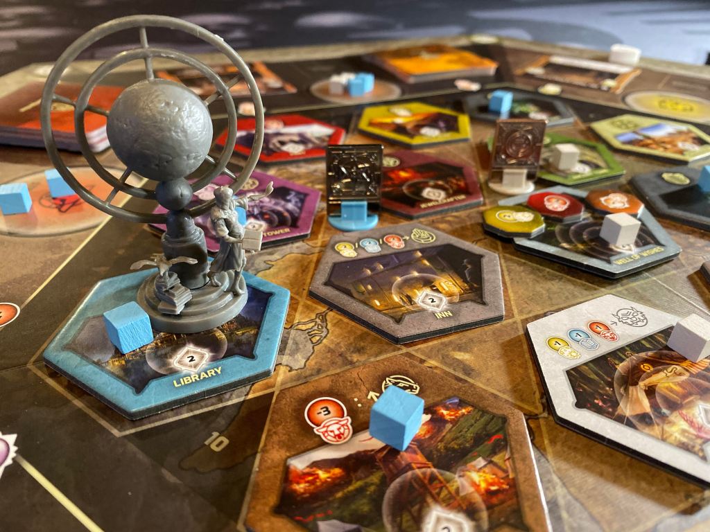 One of the biggest things I found fun and exciting was the draw of locations and the card draws. I LOVE exploration games and this one delivers although the exploration aspect of the game quickly vanishes the more players you have. There are only 19 tiles in each game and in a five-player game you will blaze through all those after just a few rounds. Although even after the exploration aspect was finished the game transformed into something else. And depending on the player and possibly their secret goals, this could be anything! You could focus on becoming a fantastic monster hunter, gaining influence in Courage so you can slay more beasts or you could become a fabled Relic hunter gaining influence in Vision so you can acquire many different Relics. And with the included modules there are even more avenues you can explore to gain points. It’s almost overwhelming………….almost.