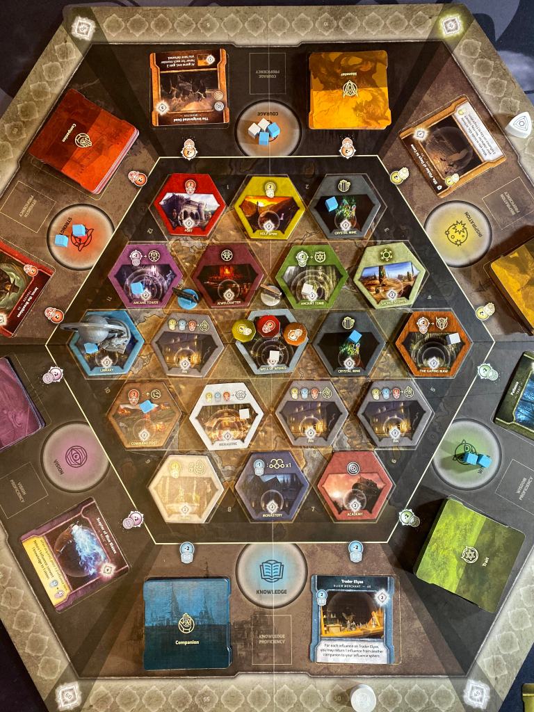 Lacking player interaction in a competitive game isn’t the best but I still had a lot of fun playing the game regardless. The main actions are easy to remember and complete and there is a slight thrill to be had manipulating all your influence scattered about. The only real downside was the plethora of side actions that can be taken. It took me quite a while to remember them without having to reference the included reference card. And even then, there are a few things to go through although eventually it really does become second nature. That said, players who get analysis paralysis will lock up on this one for sure. The choices of which influence to combine to heroic influence or to grab a proficiency tile or just leave the influence there to simmer so you can use it for a trait or relic…..so many juicy choices to be had.