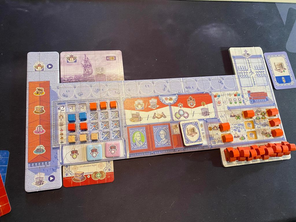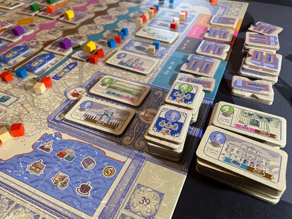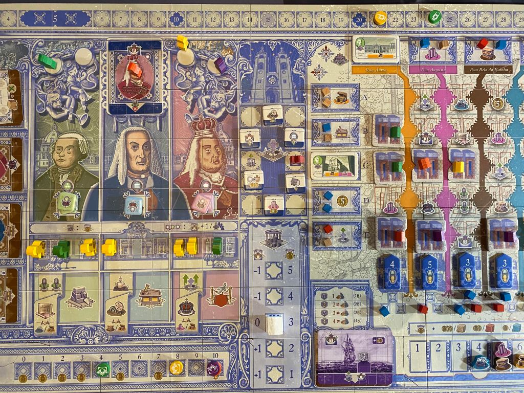 The theme is outstanding and it really shows through the gameplay. Everything you do in the game lends back to the theme from vying for more political influence from the noble’s houses to removing rubble so you can build stores. When you buy a new ship you increase the treasury value because more ships equal more money. I mean the way the gameplay is integrated into the theme here is just mind boggling. There are even interesting tidbits about the rubble and other items of interest from that time period when all this was going on in the rulebook you can learn! To see that what you are doing in the game lends itself so thoroughly to the actual Lisboa times is incredible.