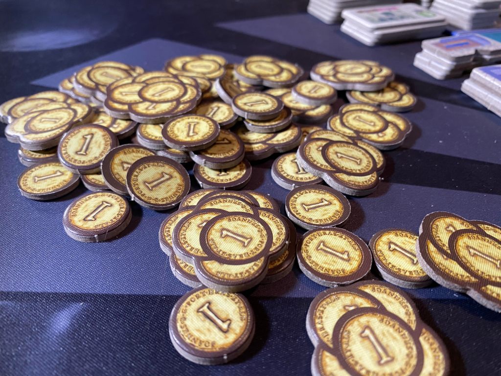 Lastly you could choose to Sponsor an Event which basically allows you to play a card to the main board and take the cards action by paying the current treasury value amount. This is an easy way to do one of those main actions without having others follow you or even gain a few resources. Players will continue taking turns doing this until the halfway point of the game where a few points are gathered and some cards reset. This triggers once a player has either gathered two full rows of rubble or three of the draw decks have run empty. Then new cards will come out representing movement forward in time. Once again players will take turns completing actions until a player has 4 full sets of rubble or another three draw piles run out, at which point you finish the current round, play one more round and then calculate score. Whoever has the most VP’s wins!
