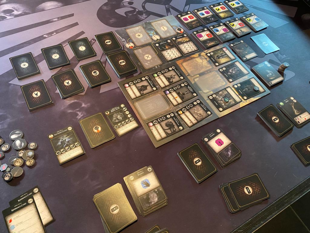 The card quality and board quality is really nice with each having a nice finish about them. Also huge props for the boards and cards NOT warping. I see so many card and board games warping due to the humidity anymore. Not much to speak on with the cardboard tokens, they are pretty standard fare. I will say there are A LOT of different card decks you need to set up so I would rate this game on the heavier end of the setup spectrum. Eight decks for the different Stamina cards, another six decks for the enemy and location cards, two more decks for the loot cards not to mention the individual player decks. It’s quite the spread I won’t deny.