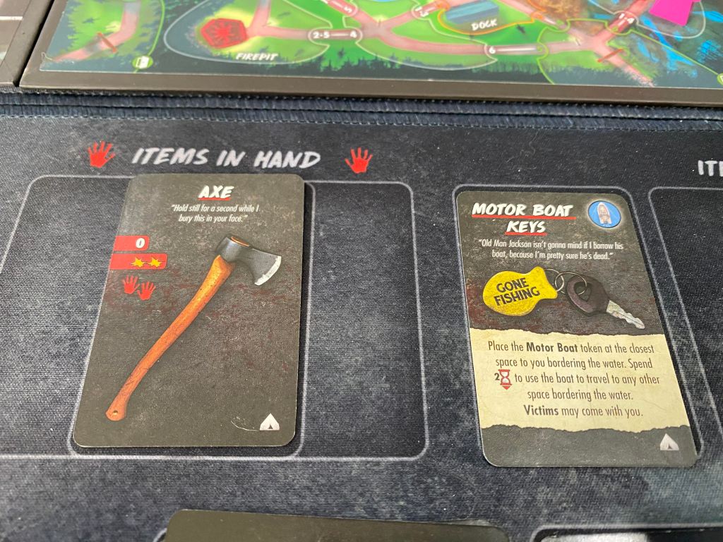 This game is HUGE on theme. Beyond the typical horror movie tropes, you can create some really memorable moments with this game based on a great number of situations that can occur. Frankly, it boggles the mind at the decision space in this game which leads into hugely thematic situations. Picture this, you are at the Docks with a victim close by and you see the killer across the lake moving towards another pair of victims on the bluffs. You quickly search through the items at the docks and discover the boat keys! You turn, and reassure the victim everything will be ok and then leap into the boat, blazing across the lake, quickly ushering in the two victims right as Hans closes in and whipping them back to the dock. Making haste, you move a couple victims to an exit breathing a sigh of relief….for now.