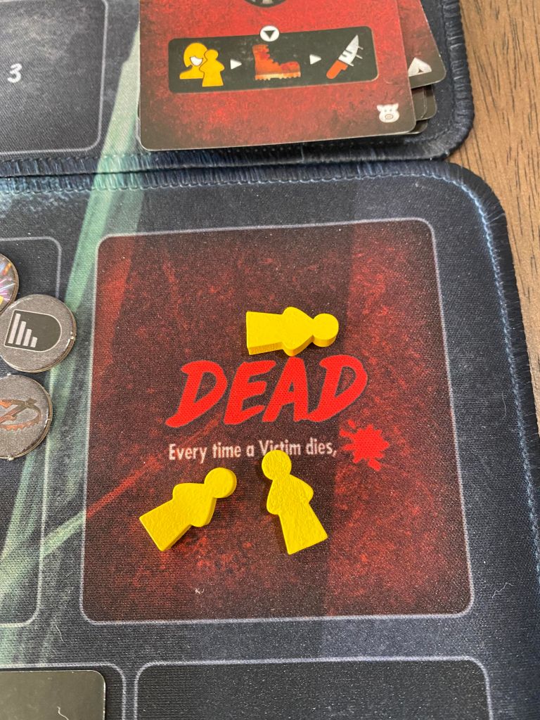 The rulebook is pretty good overall. It explains most things well enough and has a good flow for learning the game. The back of the book has a nice turn structure so you can keep it out to follow along with easily, which is always a plus. That said, I wish the turn structure was printed on one of the boards or the player mat somewhere. It seems like even after 10 plays of the game I’m STILL needing to reference it as I am always forgetting the order of operations. As in, when to buy action cards and refresh the old ones or the order of the killer actions along with the victims panicking.
